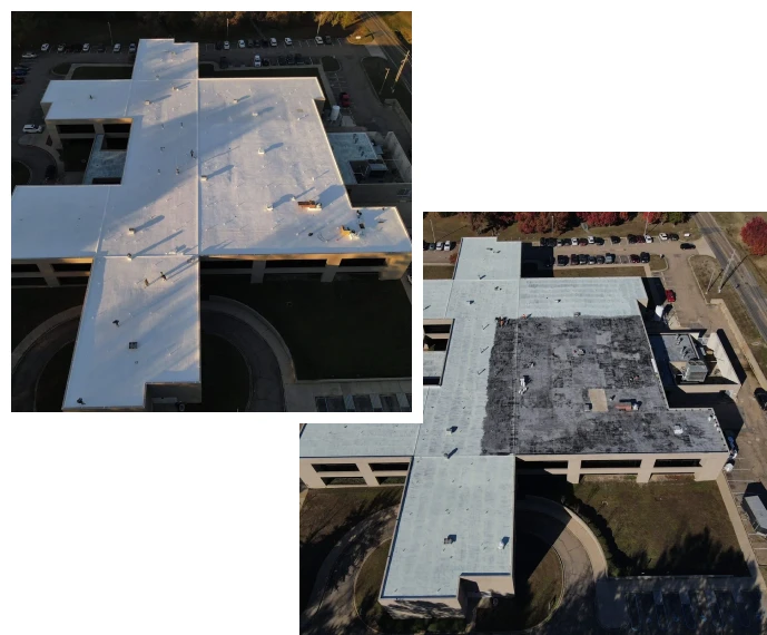We provide maintenance, repair, reroofing, drone inspections, and installation of TPO and PVC systems.